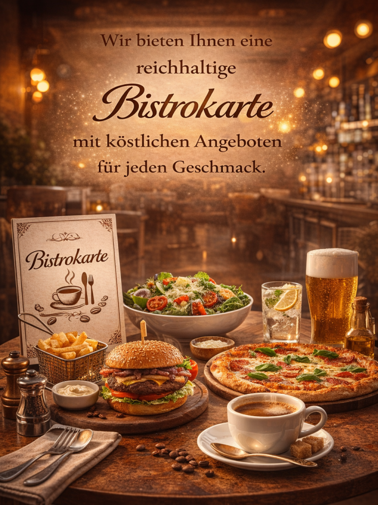 Wir bieten ihnen eine reichhaltige Auswahl an leckeren Bistrospeisen, von Flammkuchen, Ofenbaguette, Pizza und vieles mehr